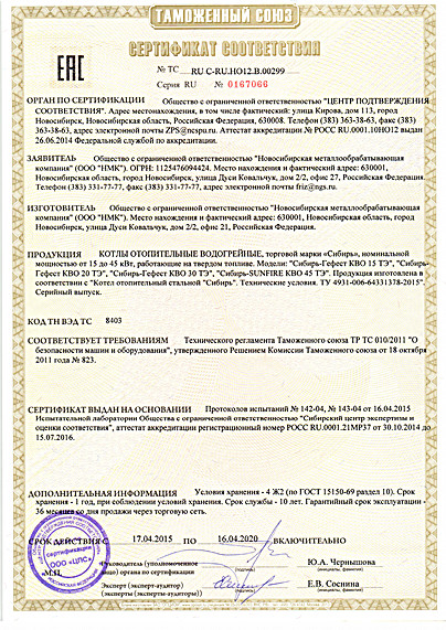 - Более высокий КПД. По сравнению с линейкой котлов «Сибирь - Гефест» кпд вырос на 10%.